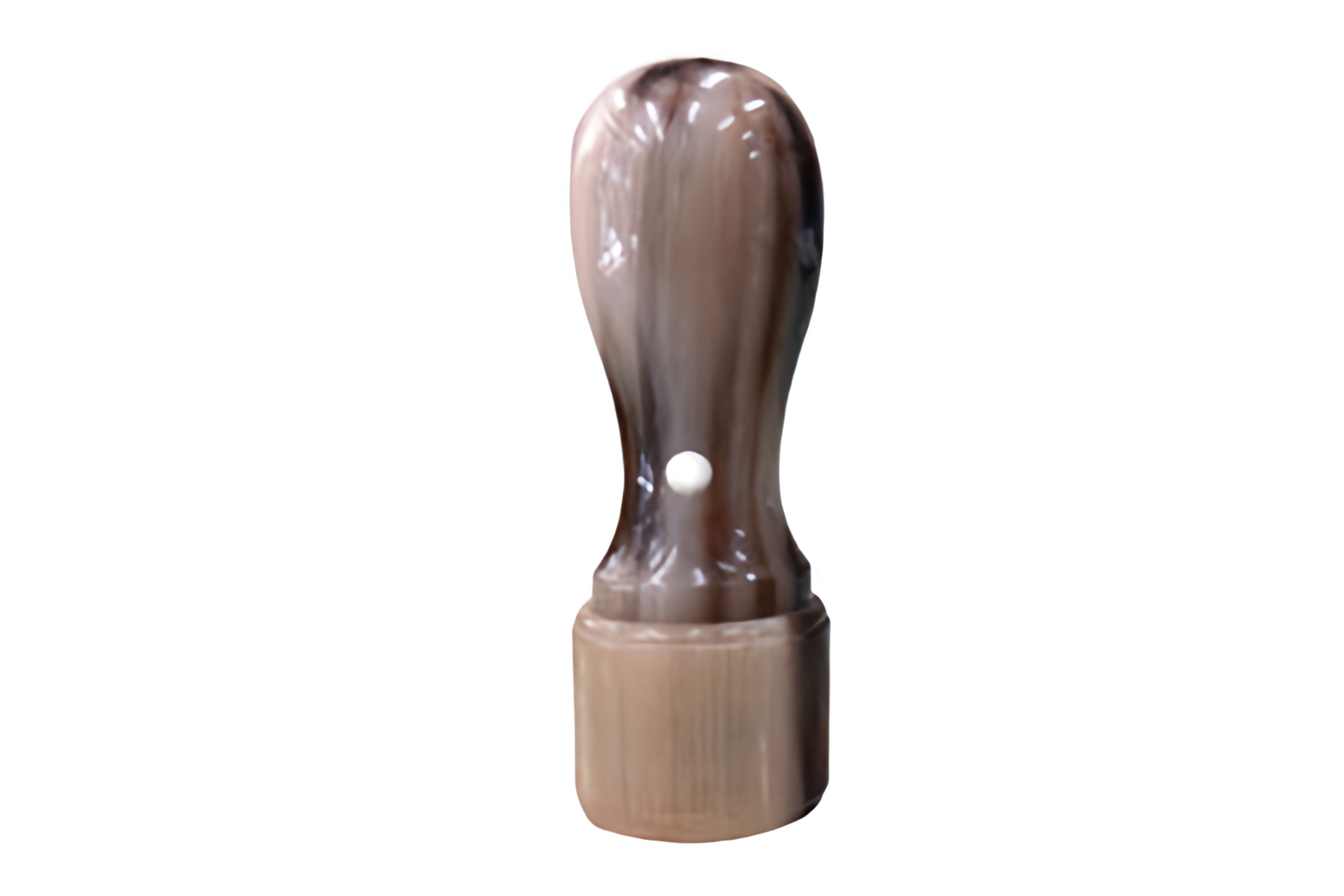 朱肉の付き具合に優れ、捺印の感触や耐久性(硬質)、粘りも申し分ございません。当店では、中卸フ入(濃色中卸)特上卸(淡色特上)白卸(純白極上)の3ランクに分けご提供させていただいております。いずれも角の先端から採取した芯持ち極上ものをご用意いたしております。