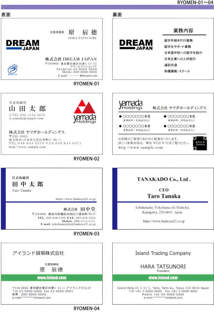 一般的なビジネス用名刺から、それぞれの職種に見合った高級名刺など