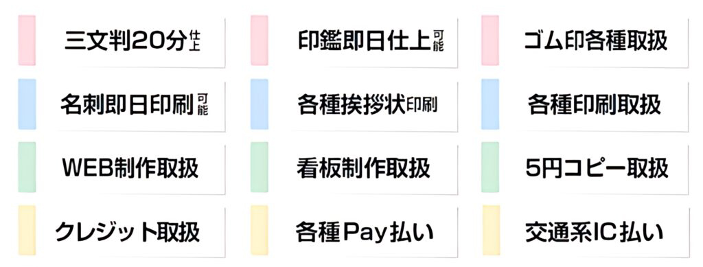 はんこ・名刺・最短即日仕上げ可能